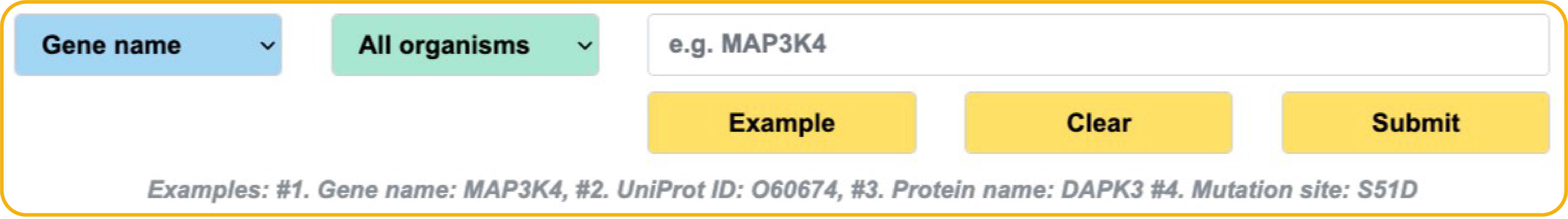 We manually collected the description of kinase activity from literature, and provided rich annotations for the kinase, such as protein sequence, kinase family, related functions of kinase genes and proteins and protein structure. The kinase substrate(s), kinase-specific phosphorylation sites, inhibitors(s) and mutation frequency are also available.